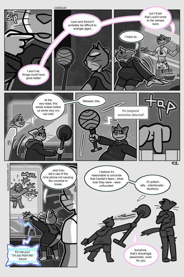 They… did they really have to make the space station pink and yellow. Wait uh, sorry, what do you mean by “Plan B??” AND THAT DOES IT, THAT’S THE END OF CHAPTER 3!!! For the next couple months (until AUGUST 27TH, 2026), the comic is on hiatus. I’ll be posting a WHOLE BUNCH of bonus… Continue reading Page 325